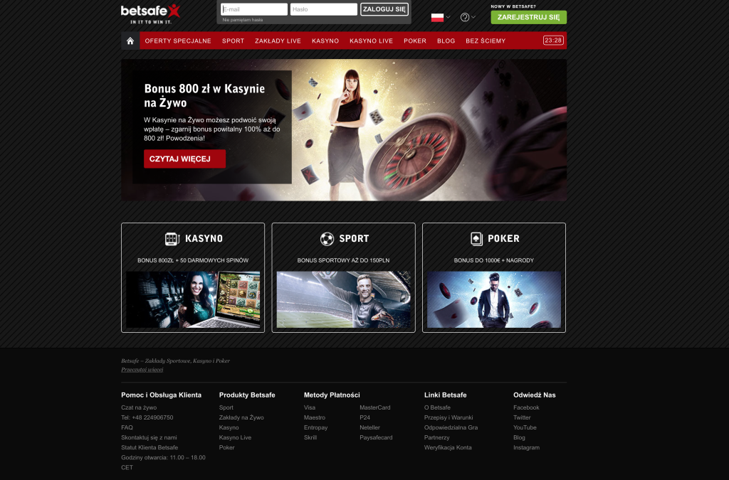 Jeśli lubisz różnorodność, to z Betsafe trafiłeś w dziesiątkę. Serwis działa od 2006 i ma w swojej ofercie zarówno gry hazardowe jak i zakłady bukmacherskie.