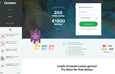 Casumo kasyno to unikalny, dynamicznie rozwijający się serwis, posiadający w ofercie gry od najpopularniejszych deweloperów (w tym NetEnt oraz Williams Interactive) oraz przyjazny, innowacyjny interfejs. To portal tworzony przez dynamicznie rozwijający się zespół pełen ludzi z pasją, którym przyświeca wspólne hasło: „nudę zabijamy zawodowo”. Wyróżnia się przede wszystkim dbałością o komfort gracza. Kolorowy, nowoczesny design i nietypowy, „przygodowy” system rozwoju zaczerpnięty rodem z dobrze nam znanych gier RPG zapewniają niepowtarzalne wrażenia. Graj z Casumo, żeby przeżyć niezapomnianą przygodę w najnowocześniejszym sieciowym kasynie!